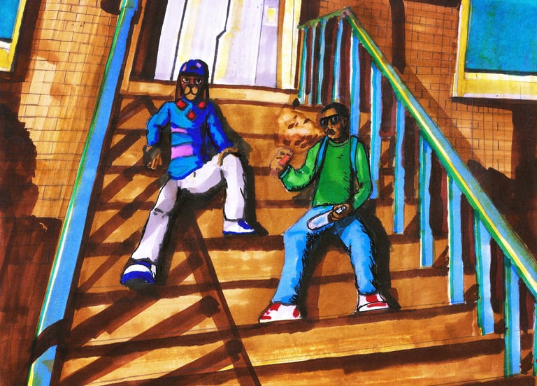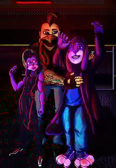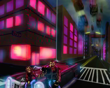 PEEV'D is animated Series (WIP) set in Brooklyn 2095 following James, a hybrid Lion-Human Guitarist who is down on his luck and gets a bar job to survive. Now working at "The Coop" he discovers that his coworkers and the Owner"Coq", a 115yr old war veteran Rooster-Human, is up to something shady when they're not slinging drinks.